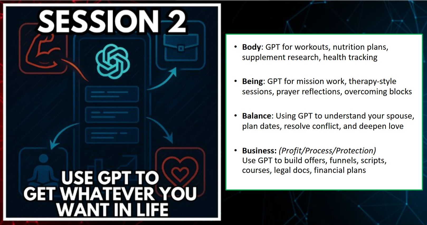 - Use ChatGPT to maintain your Dream Life, Health & Wealth Plan